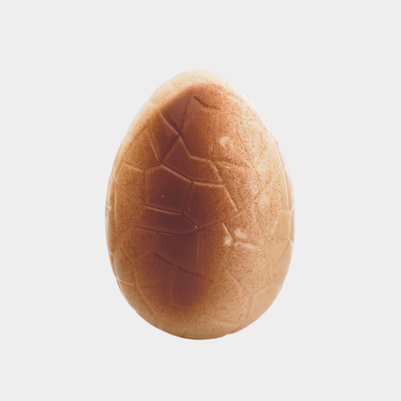 Figura hueca de chocolate blanco para decorar la mona de Pascua.