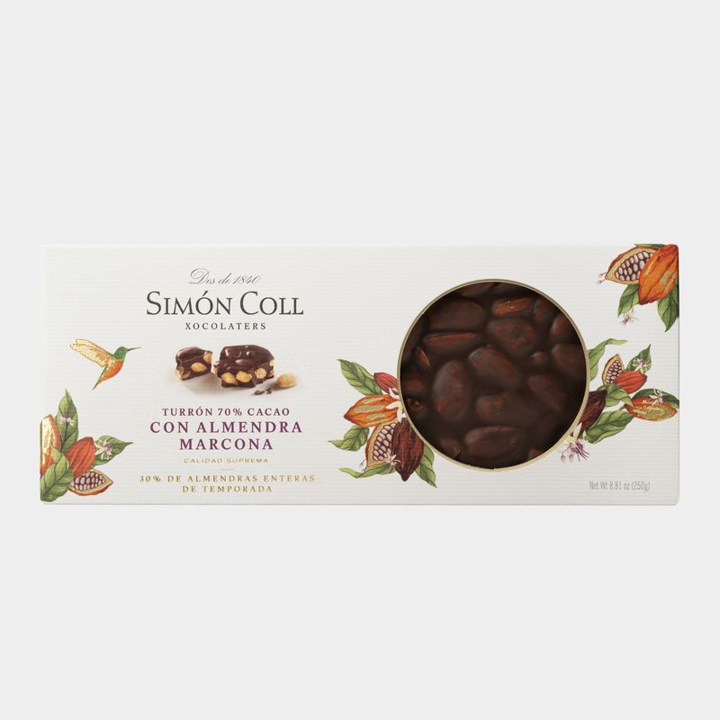 Pels amants de les ametlles, us portem aquest torró elaborat amb ametlla marcona. El seu sabor i qualitats excepcionals creen una experiència de degustació quan són combinats amb la intensitat de la xocolata 70% cacau. Aquest Nadal no voldràs provar cap altre torró.