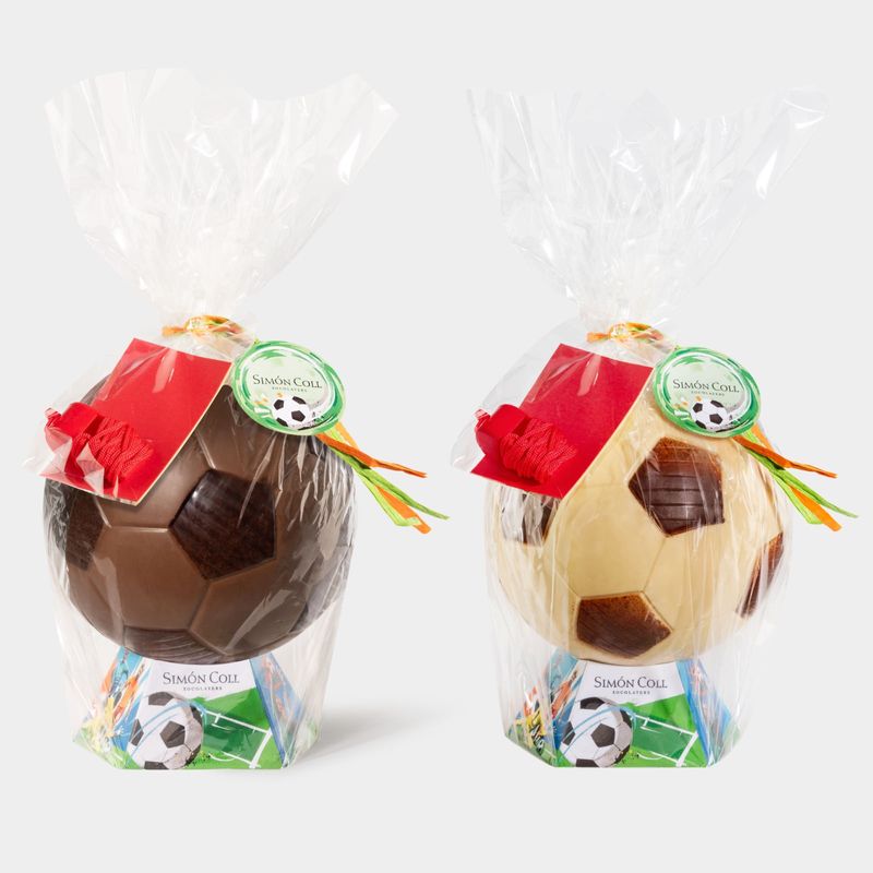 Figura hueca en forma de balón: disponible en dos sabores, de chocolate con leche o chocolate blanco. Está envuelta con un celofán, con un pito y unas tarjetas para jugar a ser un auténtico árbitro de fútbol y también para decorar la mona de Pascua. Si tu ahijado/a adora el fútbol, esta es su figura. Chocolate blanco o chocolate con leche, ¿Cuál prefieres? Indícalo como comentario en tu compra.