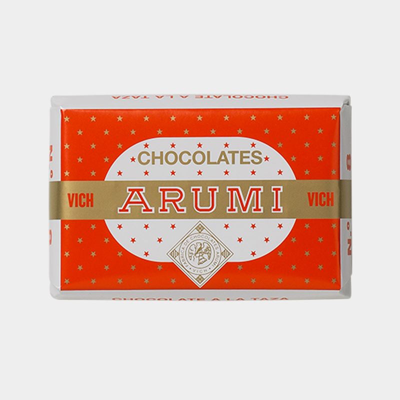 Drinking chocolate. Made with 45% cocoa, with a cinnamon aroma and cornstarch to produce a thick texture. Ideal for lovers of drinking chocolate with the aroma of cinnamon and a cocoa flavor. For the nostalgic Arumí chocolate consumers. Gluten-free. Easily divisible, with 8 portions of 25g to facilitate preparation.