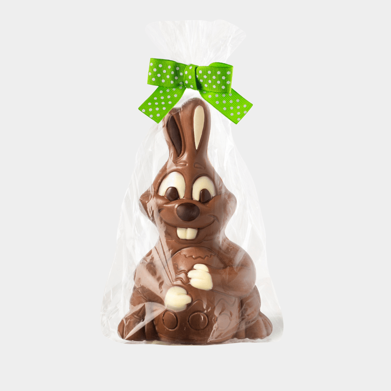 Figura hueca de chocolate con leche, pintada a tres colores con chocolate con leche, blanco y negro, para decorar la mona de Pascua. o El precio indicado es por unidad. Puedes indicar en “Comentarios” en la página de “Check Out” qué figura quieres. En la mesura de lo posible y en función de existencias, intentaremos que recibas el producto indicado.