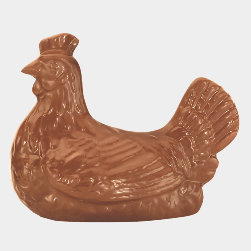 Figura hueca de chocolate con leche para decorar la mona de Pascua.