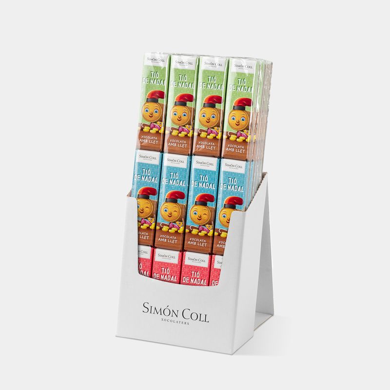 A collection of three milk chocolate bars (18g each) wrapped in charming Tió de Nadal designs. It's the perfect treat to share with family on Christmas Eve, adding a sweet and fun surprise that will delight the little ones.