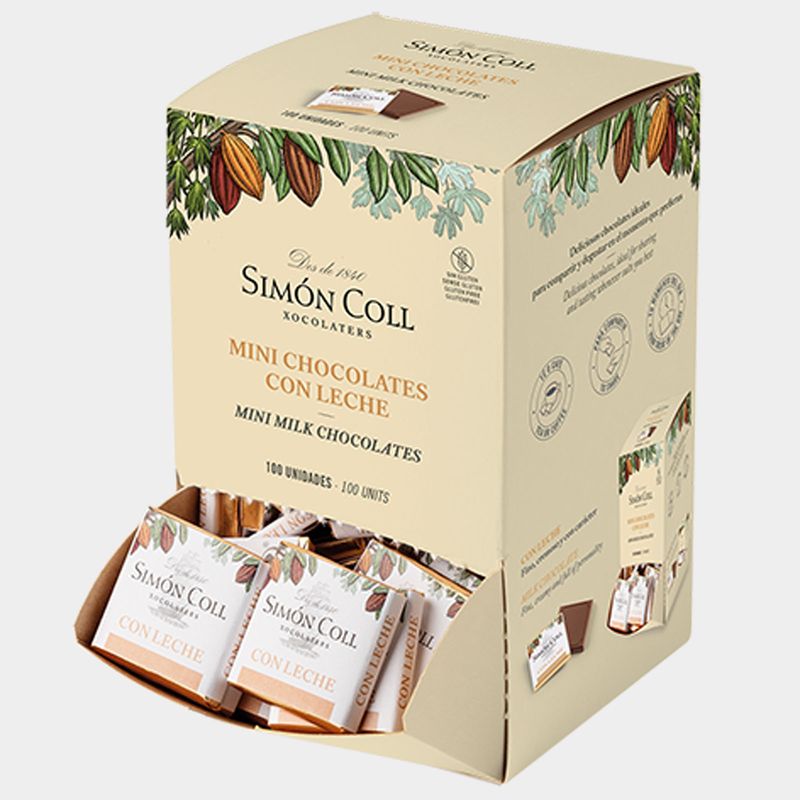 Bag with 100 5g portions of milk chocolate, made from the roasted cocoa bean in our factory. Ideal for people who like to have a little chocolate with their tea or coffee.