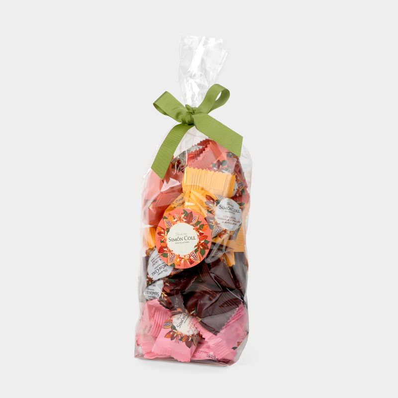 A creation to awaken the senses. The assorted Simón Coll chocolate and hazelnut praline bonbon bag is made with a selection of high-quality ingredients.