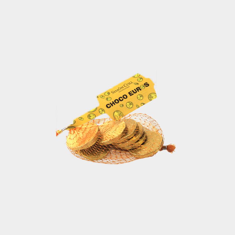 Bolsa de red con 8 monedas de chocolate con leche 30% cacao que contiene: 5 monedas grandes y 3 monedas medianas. Ideales para compartir entre varios niños.
