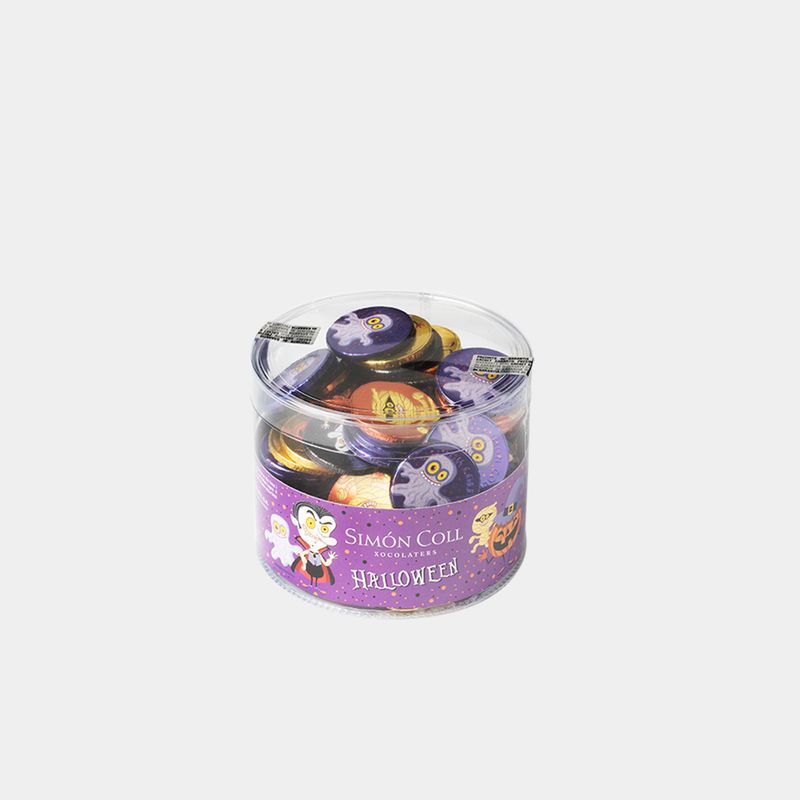 These milk chocolate coins are here to add a terrifyingly fun touch to your Halloween party. The jar includes 110 high-quality milk chocolate coins, each individually wrapped in metallic paper and decorated with classic Halloween characters: the mysterious mummy, the intriguing vampire, the mischievous witch, the enchanted pumpkin, and the enigmatic ghost.