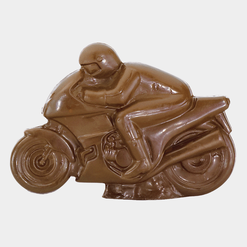 Figura hueca de chocolate con leche para decorar la mona de Pascua.