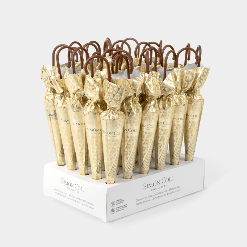 Made from creamy milk chocolate and wrapped in an elegant gold design, these umbrellas are the perfect detail for your events, an ideal gift for your loved ones or simply to enjoy a treat. They are the perfect way to share joy and good taste, making them the ideal choice for birthdays, meetings and any celebration.