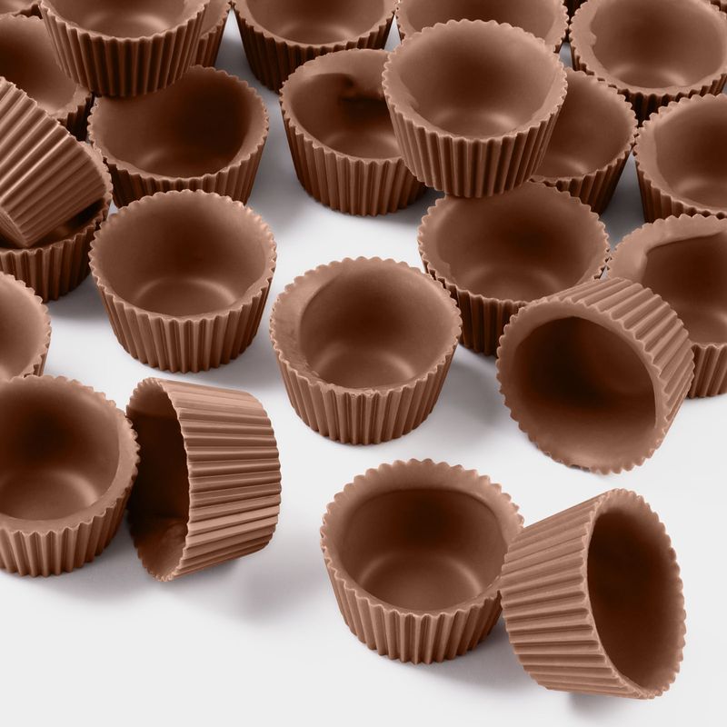 El chocolate con leche clásico. Sabor equilibrado entre chocolate y leche. Son ideales para elaborar pequeñas creaciones estilo petit fours. No contienen gluten por lo que son aptas para celíacos. Envasado en cajas con 432 unidades.