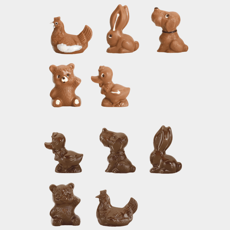 Chocolate con leche. Ingredientes: Azúcar, Manteca de cacao, LECHE en polvo, Pasta de cacao, LECHE en polvo desnatada, Emulgente (Lecitina de SOJA), Aroma (Vainillina). Cacao: 32% mínimo. Chocolate. Ingredientes: Azúcar, Pasta de cacao, Manteca de cacao, Emulgente (Lecitina de SOJA), Aroma. Cacao: 50% mínimo..