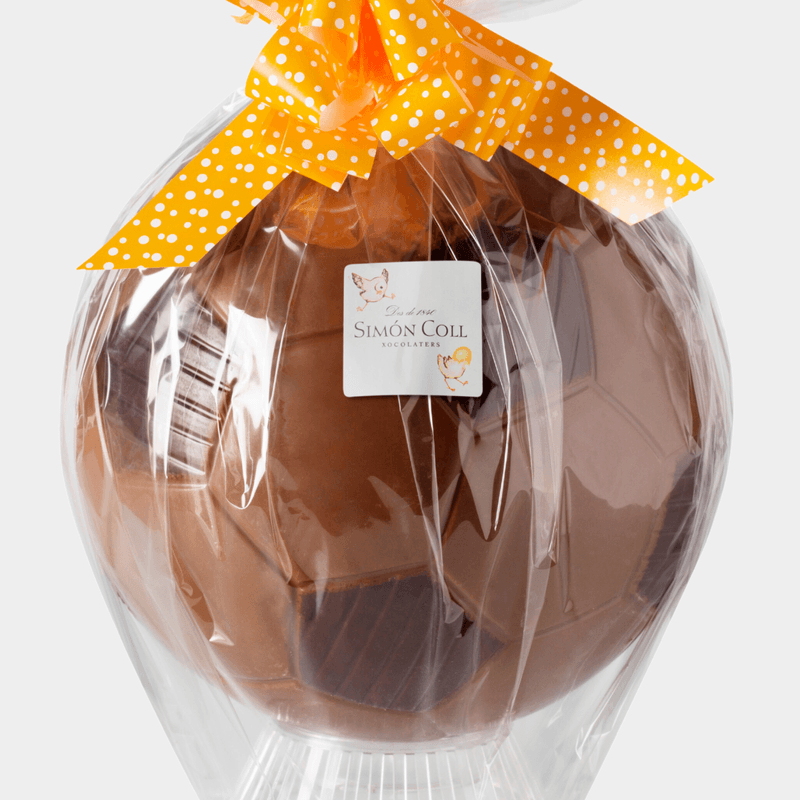 Figura hueca de chocolate con leche para decorar la mona de Pascua.