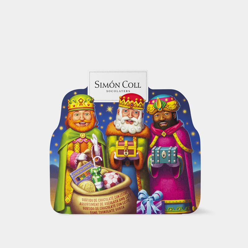 Celebra la llegada de los Reyes Magos con nuestra caja surtida de chocolates, pensada para que los peques disfruten al máximo esta fecha tan especial. Dentro encontrarás: 2 monedas, 2 sombrillas, 1 pelota de chocolate y 1 estuche de choco-sticks Reyes Magos. Ideal para dejar junto al zapato, repartir en la cabalgata o añadir a la mesa de Reyes.
