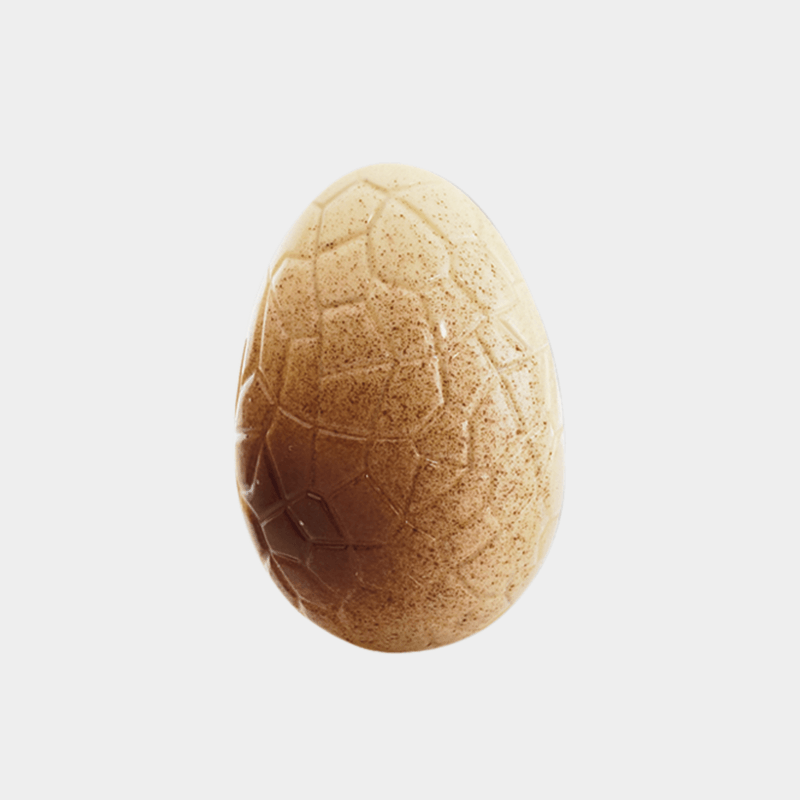 Figura hueca de chocolate blanco, para decorar la mona de Pascua.