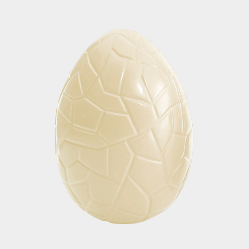 Figura hueca de chocolate blanco, para decorar la mona de Pascua.