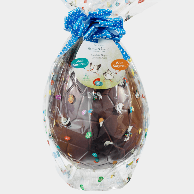 Huevo de chocolate negro 50% cacao con sorpresa dentro. Ideal para regalar durante la Pascua.