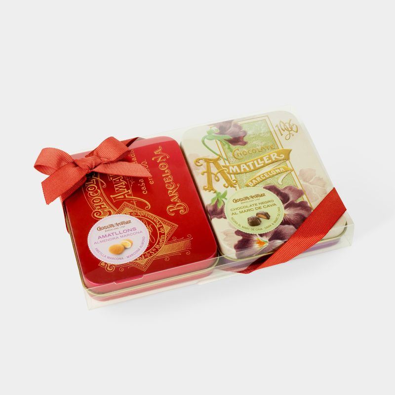 Bombón de Marc de Cava. Ingredientes: Azúcar, Pasta de cacao, Manteca de cacao, Marc de cava (8%), LECHE en polvo, NATA (LECHE) líquida, Aromas, Estabilizante (E 420), Glucosa líquida, Emulgente (Lecitina de SOJA).