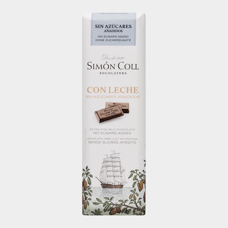 Chocolate con leche sin azúcares añadidos con edulcorante. Ingredientes: Edulcorante (Maltitol 41,5%), Manteca de cacao, LECHE en polvo, Pasta de cacao, Emulgente (Lecitina de SOJA), Aroma. Cacao: 34% mínimo. Contiene azúcares naturalmente presentes.